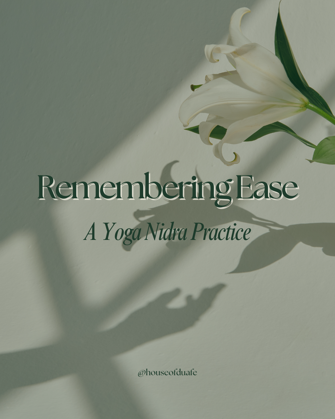 This week, listen to the short Yoga Nidra practice for remembering ease (link below). Let your body soften. Let the in between space do its work. You don't have to force anything. You don't have to get it right.